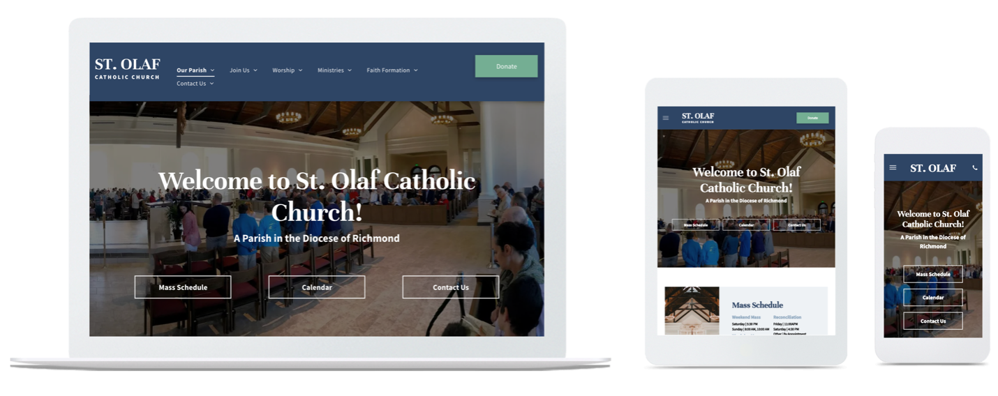 Your parish website matters! It’s a direct extension of your culture, your message, and your mission. Our design team has worked with parishes across the nation to build websites for church communities from scratch and complete website redesigns that run the gambit from elaborate to small tweaks. Our website builder, WeConnect, makes it easy for parish staff to create and maintain amazing church websites and we love being a part of the process. This week we picked three sites to show off. We hope you find some inspiration for your own parish’s website in the following designs.